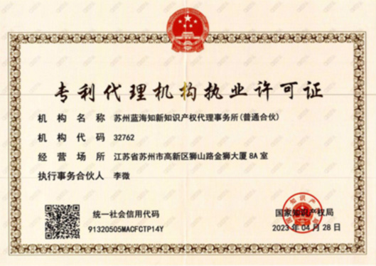 • 蘇州藍(lán)海知識產(chǎn)權(quán)代理有限公司  備案號:蘇ICP備19025706號-1